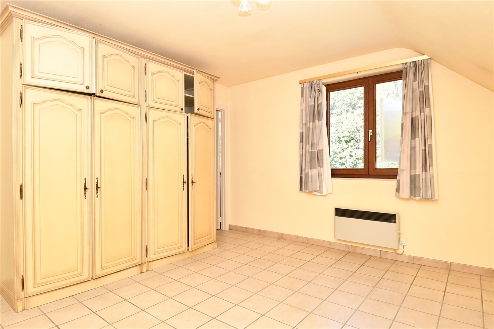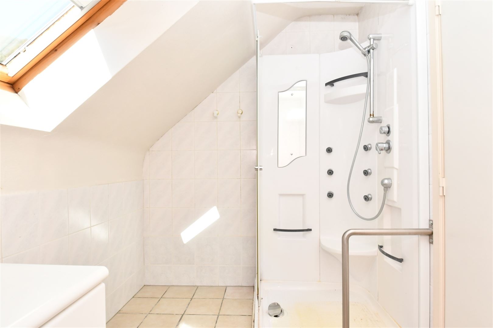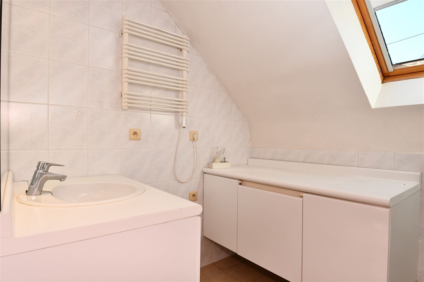 Composition : Rez-de-chaussée: hall d'entrée (8m²), living (29m²), cuisine équipée (12m²)(hotte, frigo, évier, lave-vaisselle, taques vitro), chambre (12m²), buanderie. Extérieurs : terrasse (34m²), jardin (1200m²), parking extérieur (+/- 125m²). 1er étage: hall de nuit (5,5m²), wc ind., 2 chambres (19m², 16m²), dressing (6m²), salle de bains (5m²).