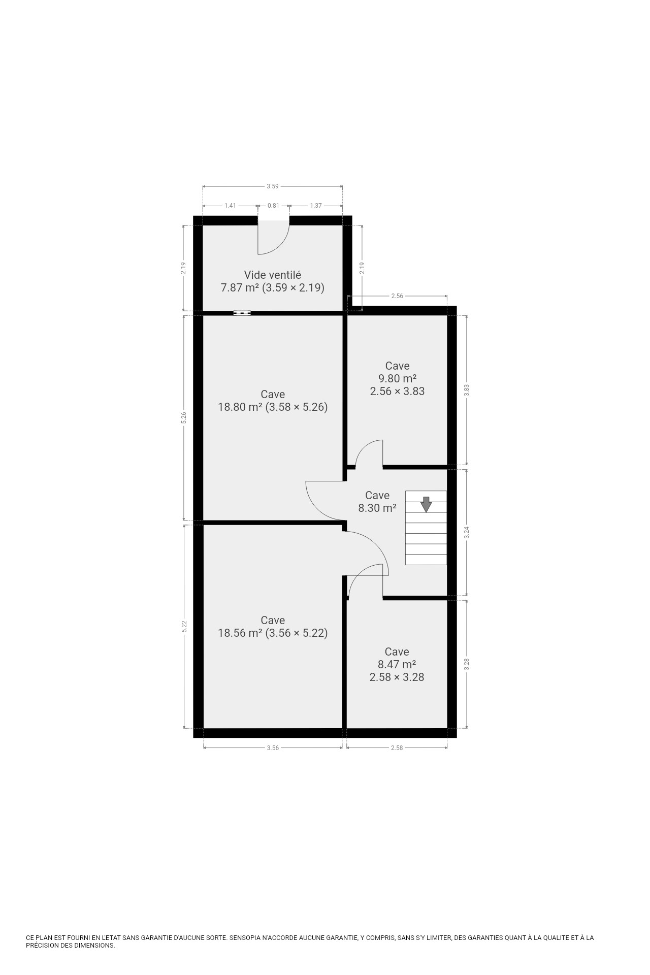 Sous-sol : Caves (56,69 m²) - Vide ventilé (7,87 m²)